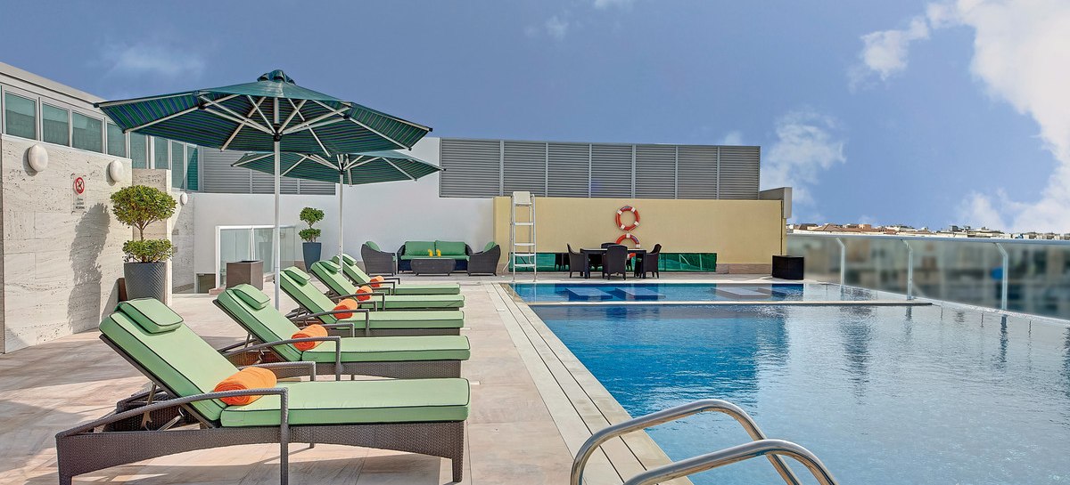 Über der Stadt schwimmt Ihr im Infinity‑Pool auf der Dachterrasse – ein stiller Gegenpol zum Tempo Dubais. Das Spa bündelt klassische Anwendungen und Wärmebereiche, ideal für eine geordnete Auszeit nach Shopping, Meetings oder Sightseeing.