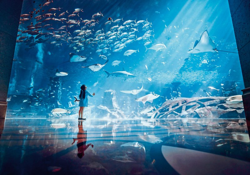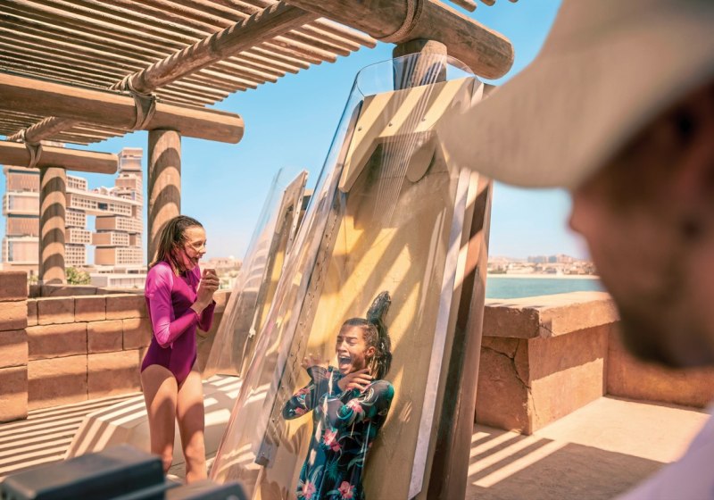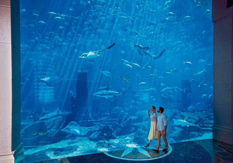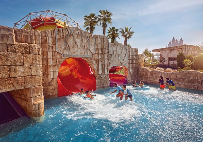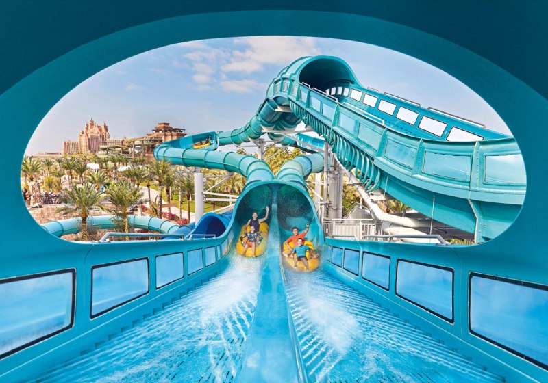 Die Freizeitwelten sind ein zentrales Motiv von Atlantis, The Palm: Aquaventure Wasserpark (ca. 22,5 Hektar, über 105 Rutschen und Attraktionen) bildet den Puls. The Lost Chambers Aquarium und die Ambassador Lagoon setzen ruhige, staunende Akzente. Zusätzlich sorgt Wavehouse mit Bowling, Gaming Zone und Surf-Simulator für Spielfreude unter Dach.