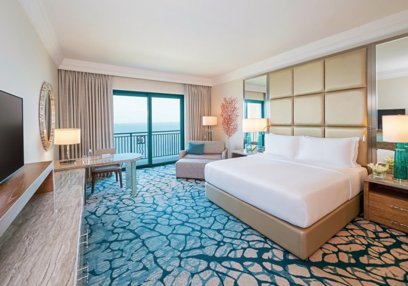 Die 1.544 Zimmer und 167 Suiten verteilen sich über 22 Etagen und folgen einem klaren Komfortanspruch. Deluxe Zimmer ab ca. 45 Quadratmeter bieten Bad/WC, Föhn, Klimaanlage, Safe, Sat-TV, Telefon und Minibar sowie Balkon oder französischen Balkon. Wahlweise nutzt Ihr Kingsize- oder zwei Queensize-Betten.