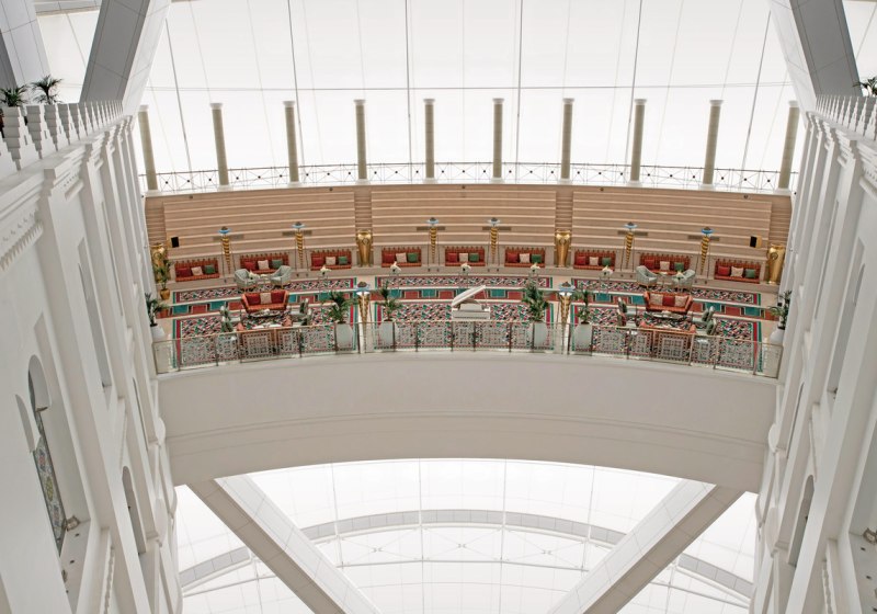 Die Lobby setzt mit Aquarien und Wasserspielen einen visuellen Akzent, der schon beim Eintreffen Atmosphäre schafft. Exklusive Geschäfte erweitern das Erlebnis um kuratierte Shoppingmomente. Abends begleiten Live-Musik und stilvolle Bars den Übergang vom Tag zur Nacht – unaufgeregt, doch präzise inszeniert.