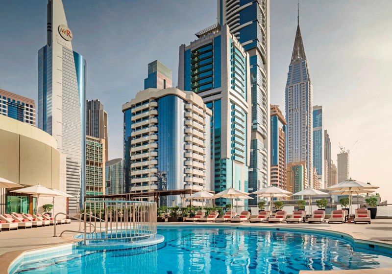 Im Towers Rotana wohnt Ihr direkt an der Sheikh Zayed Road, mitten im Geschäftsviertel von Dubai. Das Haus verbindet urbanen Komfort mit klarer Struktur: Ihr startet den Tag effizient, entspannt nach Terminen am Dachpool und plant Abende zwischen Lobby-Lounge und der charakteristischen Long’s Bar. Der Ton ist professionell, der Ablauf reibungslos, die Wege kurz.