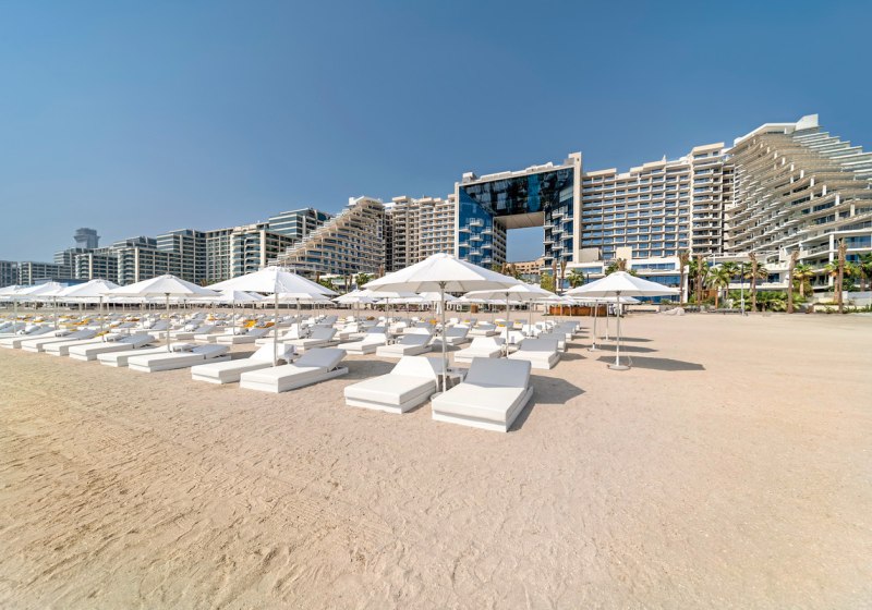 FIVE Palm Jumeirah Dubai setzt auf Palm Jumeirah einen markanten Akzent: urbanes Resortgefühl direkt am 150 m langen Strand, mit großzügigen Pools und klar strukturierten Bereichen für Ruhe, Aktivität und Szene. Ihr bewegt Euch zwischen Strandmomenten, stylisher Dachterrasse in der 16. Etage und lebendigen Social-Spots. Familien nutzen den High FIVE Kids Club, während Paare das ReFIVE Spa mit Adults-Only-Pool ansteuern. Highlight: Direkte Strandlage mit großem Hauptpool und klaren Rückzugszonen.
