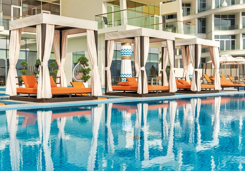 Mit Außen- und Hallenpool, Fitness-Studio und Wassersport füllt Ihr Eure Tage nach eigenem Tempo. Die Anbindung an Stadt und Flughafen bleibt übersichtlich. Wer Strandnähe in Dubai sucht und verlässliche Ausstattung schätzt, findet hier den passenden Rahmen für den nächsten Urlaub.