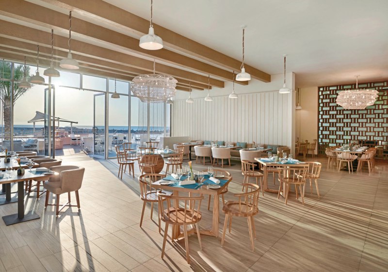 Zimmer mit etwa 40 Quadratmetern und Balkon, wahlweise mit Marina- oder Meerblick, bilden einen ruhigen Rahmen. Im Spa erwartet Euch eine definierte Struktur mit getrennten Wärmebereichen. Das breite Sportmenü am und im Wasser ergänzt den Strandtag sinnvoll. So entsteht ein aufgeräumtes Setup für Eure Strandtage im Urlaub.