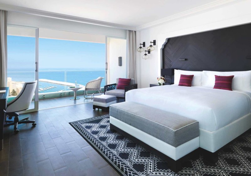 Im Fairmont Fujairah Beach Resort wohnt Ihr direkt am privaten Strand von Fujairah, flankiert von einer Marina und dem Lava Beach Club. Drei Außenpools, darunter ein Adults-only-Pool im Beach Club, strukturieren den Tag zwischen Wasser, Sonne und Ruheinseln. Das Haus wirkt modern, klar und auf erholsame Strandtage mit bequemer Infrastruktur ausgerichtet.