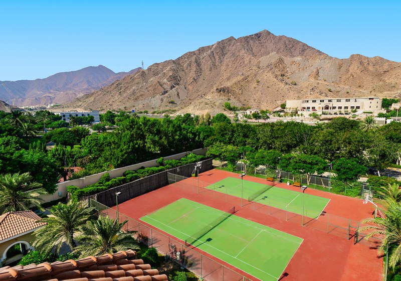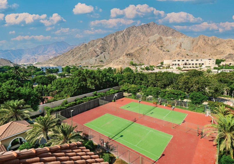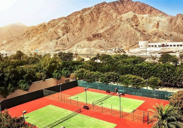 Die Lage überzeugt durch Direktzugang zum langen Sandstrand von Al Aqah. Das Hajar-Gebirge rahmt die Küste und verleiht der Umgebung Struktur und Weite. Bis zum Flughafen Dubai (DXB) sind es etwa 146 Kilometer, Ihr reist also bewusst an, um Strandtage und Naturkulisse zu kombinieren.