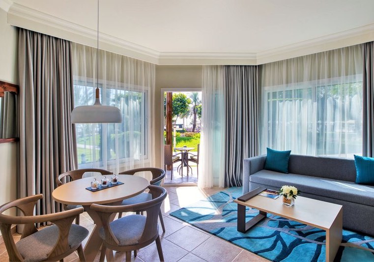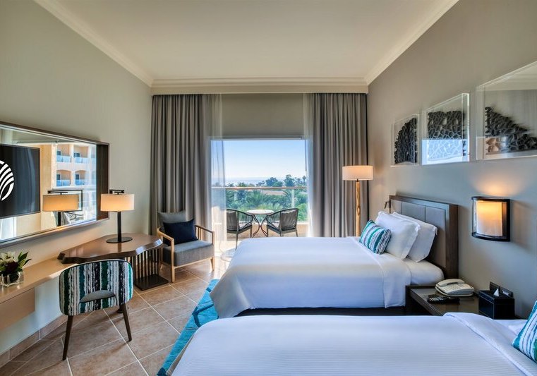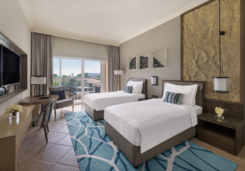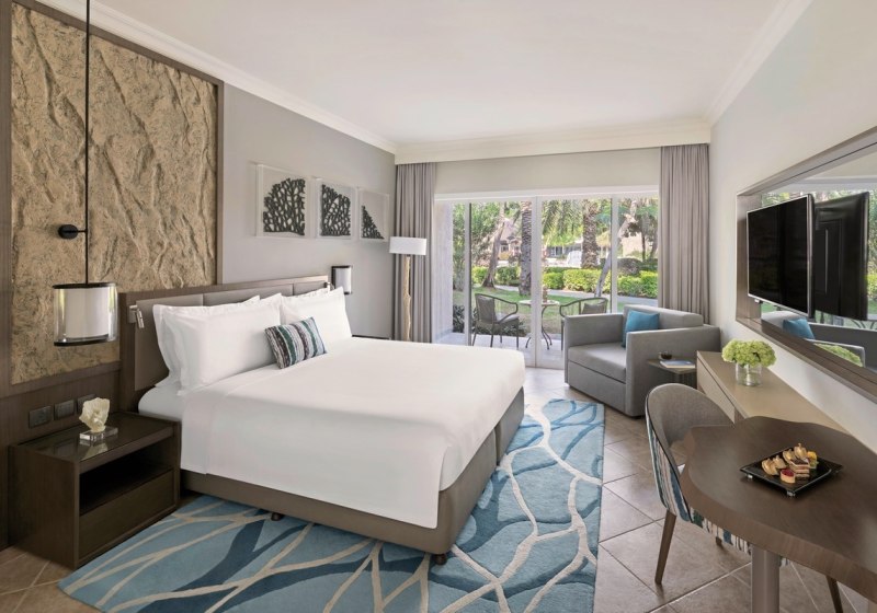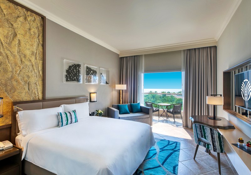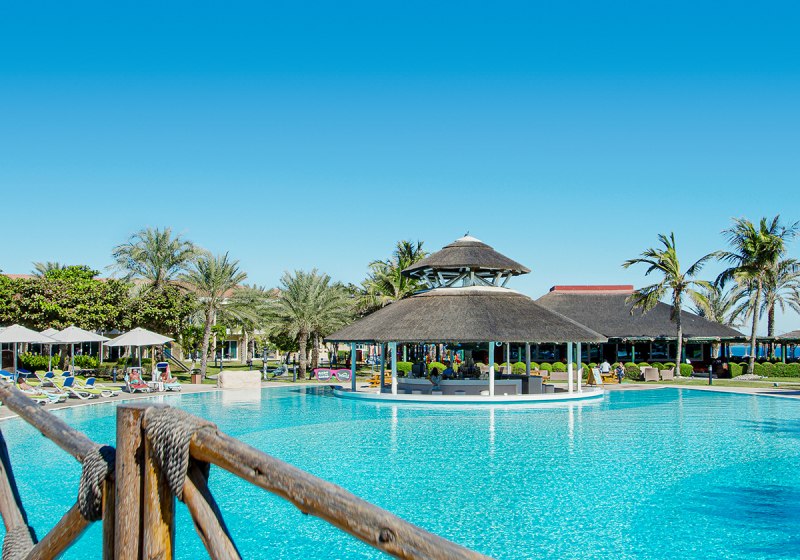 250 Zimmer und Suiten, kostenfreies WLAN im gesamten Resort und durchdachte Services prägen den Aufenthalt. Während die Kinder im Flipper’s Kids Club beschäftigt sind, bestellt Ihr an der Swim-up-Poolbar ein kühles Getränk. Highlight: Direkte Strandlage mit Hajar-Gebirge – Landschaftsbild mit starkem Kontrast.