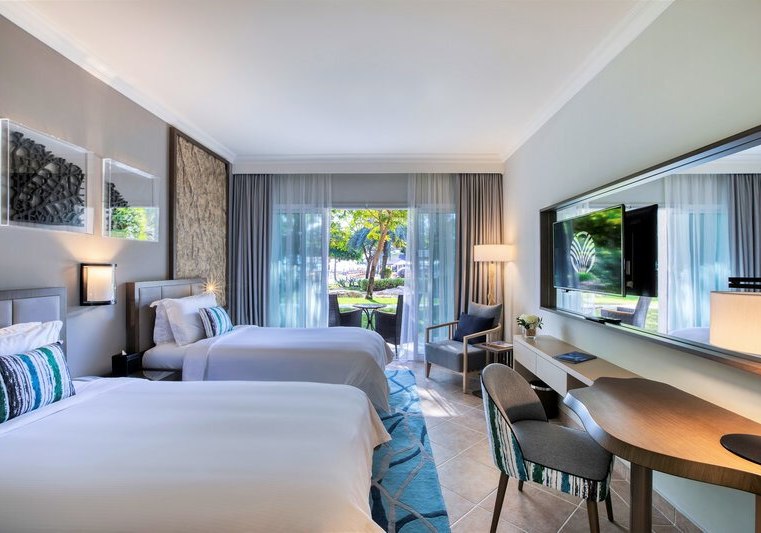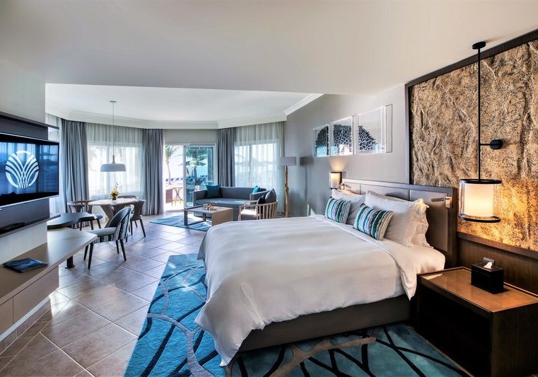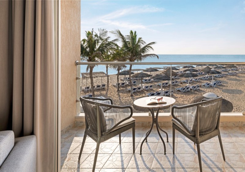 Die Doppelzimmer starten bei etwa 38 Quadratmetern und bieten Dusche, Bademäntel, Klimaanlage, Safe, Minibar gegen Gebühr, Flatscreen-Sat-TV, Telefon, WLAN sowie Kaffee- und Teezubereiter. Ein Balkon gehört dazu. Varianten mit Meerblick oder Gartenblick wählt Ihr nach Vorliebe.