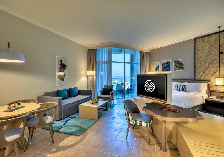 Im Fujairah Rotana Resort & Spa wohnt Ihr direkt am Sandstrand von Al Aqah, umgeben vom Hajar-Gebirge und einer weitläufigen, tropischen Gartenanlage. Die Atmosphäre ist entspannt, mit viel Platz am temperierten Pool und ruhigen Ecken. Familien, Paare und Strandfans finden hier klare Strukturen und kurze Wege.