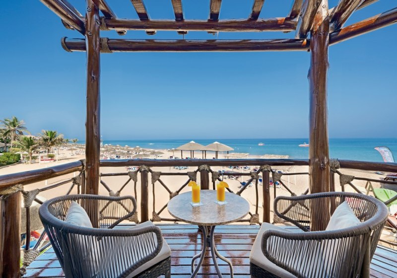- Strand & Berge: Direkt am Al-Aqah-Sandstrand; Hajar-Gebirge bildet markante Kulisse.