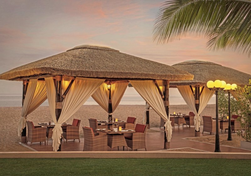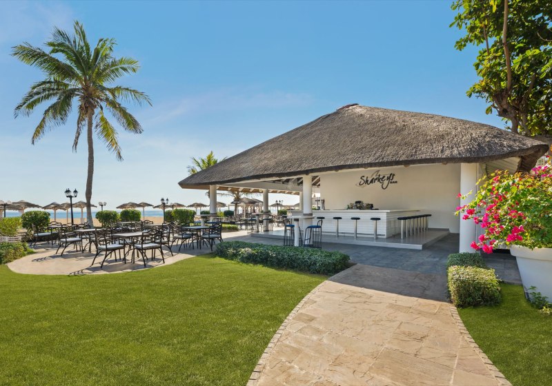 Ihr wählt zwischen mehreren Adressen: Im Mozaique All-day-dining Restaurant esst Ihr den Tag über, das Waves Beach Restaurant serviert direkt am Meer, und in der Al Falaj Lobby lädt das Café zu einer Pause ein. Bars verteilen sich über das Resort, darunter eine Swim-up-Poolbar.