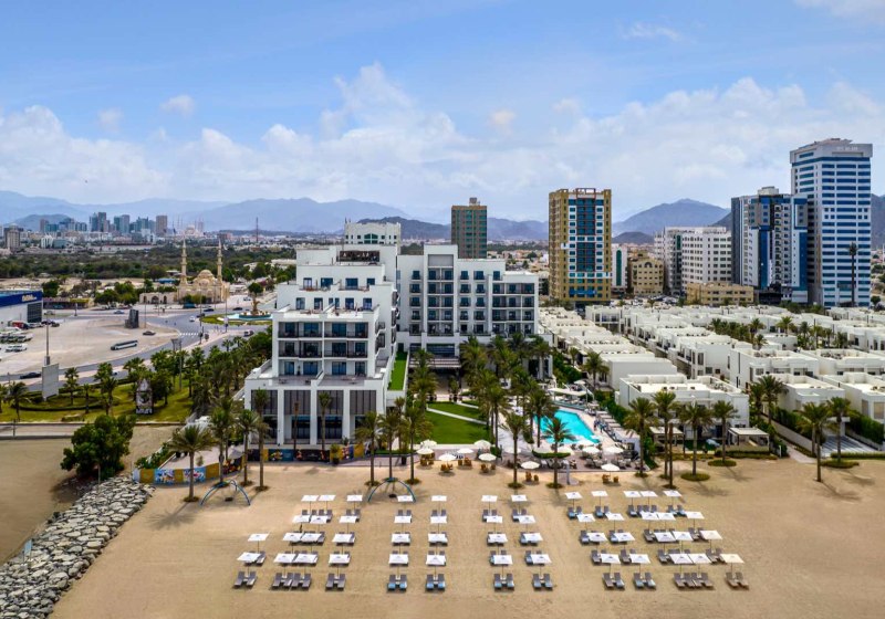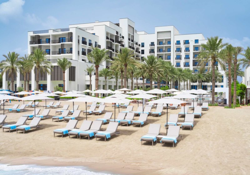 Mit Kids Club, Kinderbecken, Spa-Anwendungen und vielfältigen Verpflegungsplänen passt das Resort zu Familien, Paaren und Strandreisenden im Urlaub. Die Anreise über Dubai bleibt überschaubar. Ein Hotel für fokussierte Strandtage mit ruhigen und lebendigen Momenten.