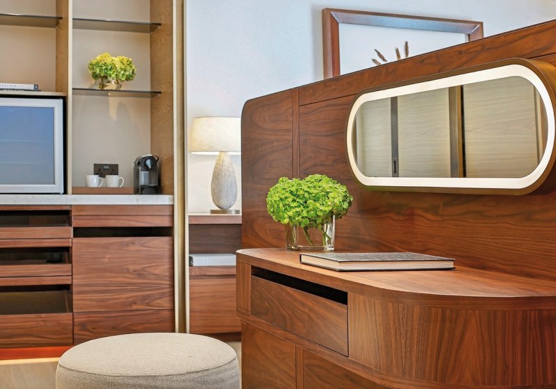 Ihr wählt zwischen Premier- und Deluxe‑Zimmern, großzügigen Suiten sowie Pool‑Villen an Land oder über dem Wasser. Premier Zimmer (ca. 47 m²) liegen im Hauptgebäude, mit Dusche, Bademantel, Slipper, Sat‑TV, Safe, Klimaanlage, Telefon, Minibar (gegen Gebühr) und Espressomaschine, plus möblierter Balkon oder Terrasse. Highlight: Klare Grundrisse mit viel Nutzfläche.