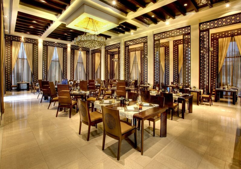 Kulinarisch erwartet Euch Vielfalt mit klaren Profilen: Im Kaheela genießt Ihr internationale und arabische Küche, unterstützt vom Holzkohleofen. Das Gobi serviert asiatische Küche. Das Farmhouse by Syrco und das Paddock Cafe ergänzen das Spektrum vom genussvollen Dinner bis zum entspannten Snack. Highlight: Arabische Klassiker und internationale Küche im Kaheela.