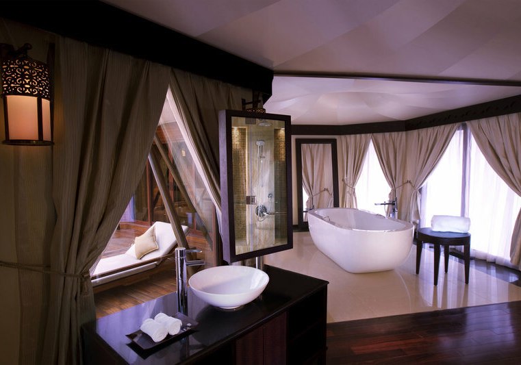 Ihr residiert in Villen mit privatem Pool und möblierter Sonnenterrasse. Der Grundriss setzt auf Privatsphäre: separater Wohn- und Schlafbereich, begehbarer Kleiderschrank. Bäder bieten freistehende Wanne, separate Regendusche, WC, Föhn, Bademäntel und Slipper. Technik & Komfort: LCD-TV, DVD-Player, Telefon, Safe, Minibar, kostenfreies WLAN sowie Kaffee-/Teezubereiter. Highlight: Villen-Layout mit eigenem Pool.