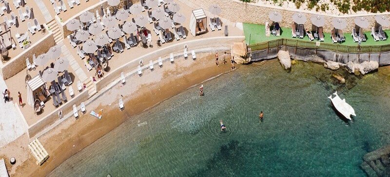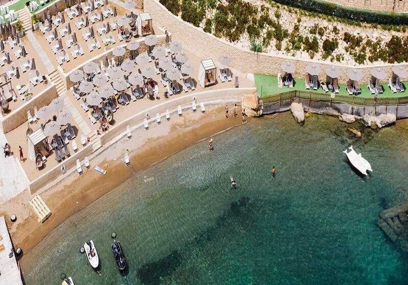 • Strandkomfort: Privatstrand mit Liegen, Schirmen und Cabanas.