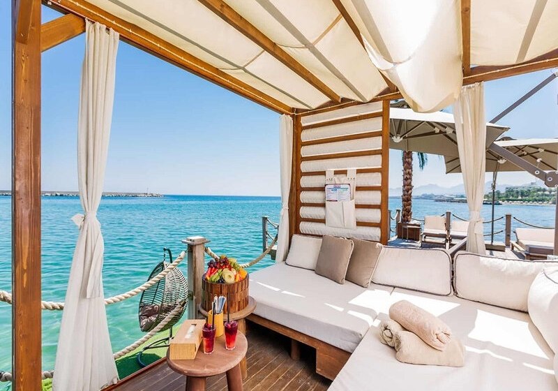 Im Außenbereich wartet ein Pool mit Liegen und Sonnenterrassen, dazu Dachterrasse und Garten. Der Privatstrand bietet Sonnenliegen, Schirme und Cabanas; Badetücher sind vorhanden. Shops, Friseur und Supermarkt vereinfachen Besorgungen. Parkplätze, Garage und Einparkservice erleichtern die Anreise. Highlight: Eigener Strandbereich mit Cabanas als klare Komfortzone am Meer.