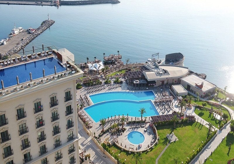 Im Lord's Palace Hotel erwartet Euch ein Haus an der Küste von Kyrenia, das Lebendigkeit und Komfort verbindet. Ihr wohnt nahe Altstadt und Hafen, mit eigenem Strandbereich samt Sonnenliegen, Sonnenschirmen und Cabanas. Die Atmosphäre wirkt urban und zugleich maritim: tagsüber Meerblick und Pool, abends Casino, Lounges und Livemusik. Familien profitieren vom Kids Club und Kinderpool, während das Spa-Center ruhige Stunden ermöglicht.