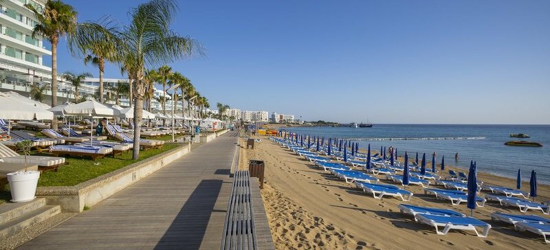 Ihr wohnt direkt am Sandstrand, nur etwa 100 Meter vom Zentrum entfernt. Die Feigenbaumbucht erreicht Ihr nach rund 2 Kilometern, Ayia Napa nach etwa 10 Kilometern. Larnaka liegt circa 50 Kilometer entfernt, der Flughafen Larnaca etwa 67 Kilometer. Wassersportangebote befinden sich ungefähr 50 Meter vom Hotel.