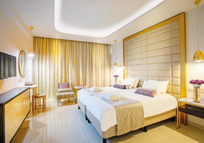 In Euren Zimmern findet Ihr Balkon oder Terrasse, Klimaanlage und Heizung sowie Safe, Kühlschrank und Sat-TV. Bad mit Badewanne, WC und Föhn, ergänzend wählbare Ausstattung wie Kaffee-/Teezubereiter, Minibar und WLAN. Verschiedene Bettentypen und Familienzimmer sind ausgewiesen, Schallisolation erhöht die Ruhe. Highlight: Viele Zimmer bieten Meerblick als markanten Pluspunkt.