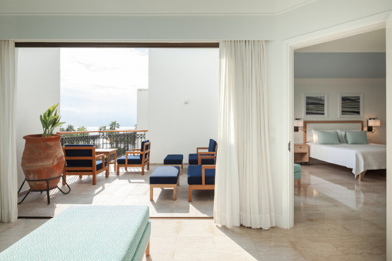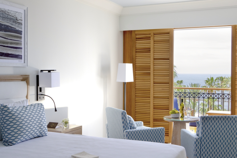 Die Doppelzimmer, die zur Landseite liegen, sind 24 m² groß und verfügen über kostenloses WLAN, LED-TV, Haartrockner, Wasserkocher, Telefon, Safe, Minibar, Bademäntel und Hausschuhe. Doppelzimmer Deluxe verfügen bei gleicher Ausstattung über eine Größe von 30 m² und habe Meerblick. Die Familienzimmer haben zwei separate Schlafzimmer, sind 56 m² groß und können wahlweise mit Meerblick gebucht werden. Die Ausstattung ist gleich wie die der Doppelzimmer. Die 35 m² großen Suiten sind die größten Zimmer des Hotels. Belegt werden können Sie sowohl von zwei Personen als auch von Familien. Einige Suiten können zur Poolseite gelegen gebucht werden.
