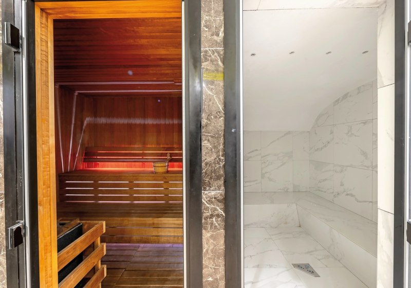 • Sauna: Trockene Wärme als Gegenpol zu Strand und Meer.