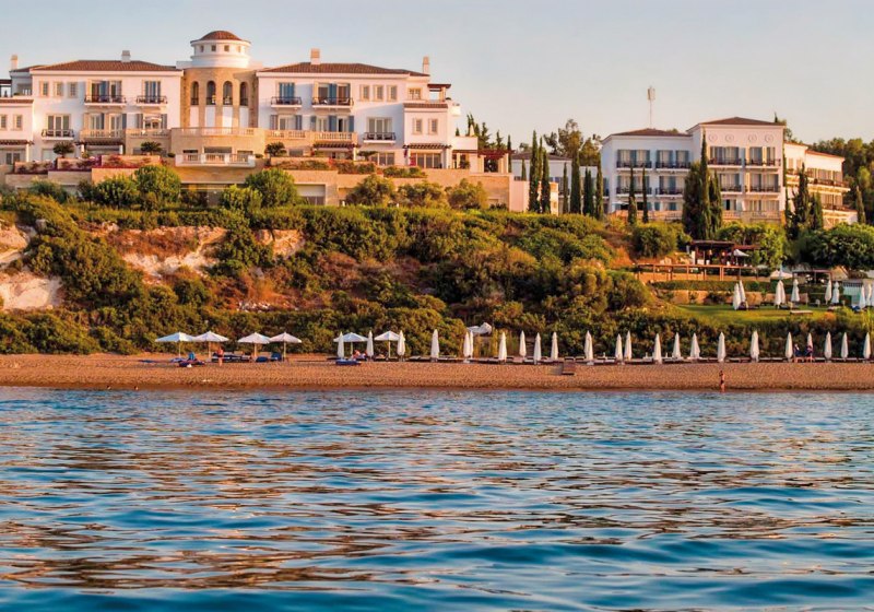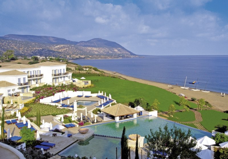 Der Charakter ist entspannt und kultiviert, ohne Förmlichkeit. Familien finden mit Miniclub, Kinderbetreuung und weitläufigen Außenbereichen viel Raum. Aktive freuen sich über Fitness-Center, Tennis mit Flutlicht, Squash und Wassersportoptionen wie Segeln und Tauchen. Kulinarisch wählt Ihr zwischen vier Restaurants und mehreren Bars – vom Pool-Snack bis zur Lounge. Highlight: Direkte Strandlage an der Chrysochou-Bucht, nah am Akamas-Gebiet.