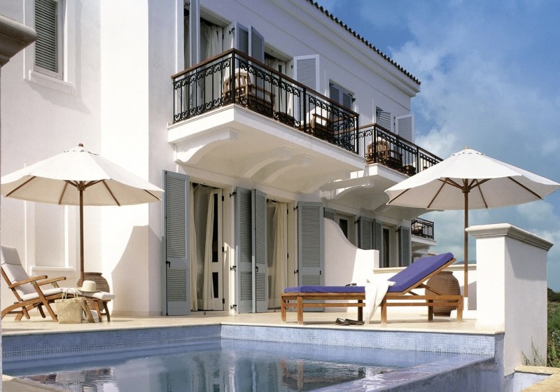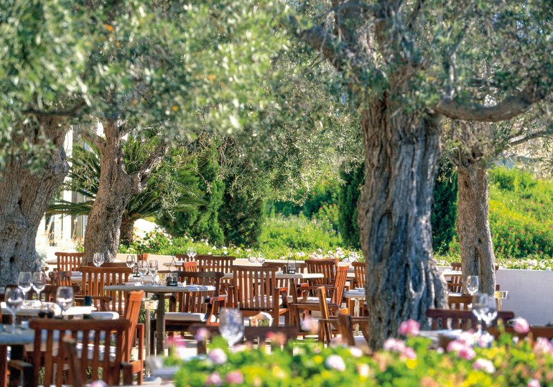 Zwei Swimmingpools, Sonnenterrassen und Liegewiesen bestimmen die Außenbereiche. Am Pool und am Strand stehen Liegen, Schirme und Badetücher bereit. Sitzterrassen, Gartenflächen und Wege zwischen den weiß getünchten Gebäuden vermitteln den Dorf-Charakter. Boutique und Kiosk, Lift und Parkplatz sowie Concierge-Service sorgen für kurze Wege.